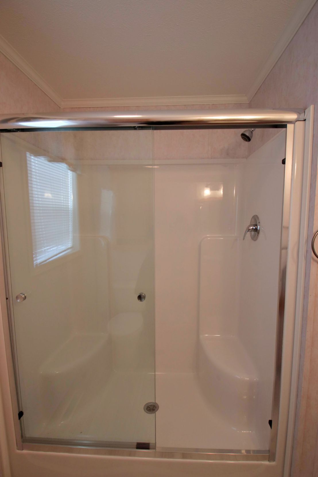 - One Piece 60" Fiberglass Shower Stall with Glass Sliding Door